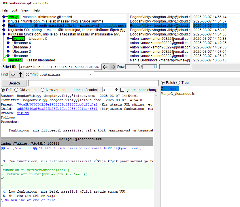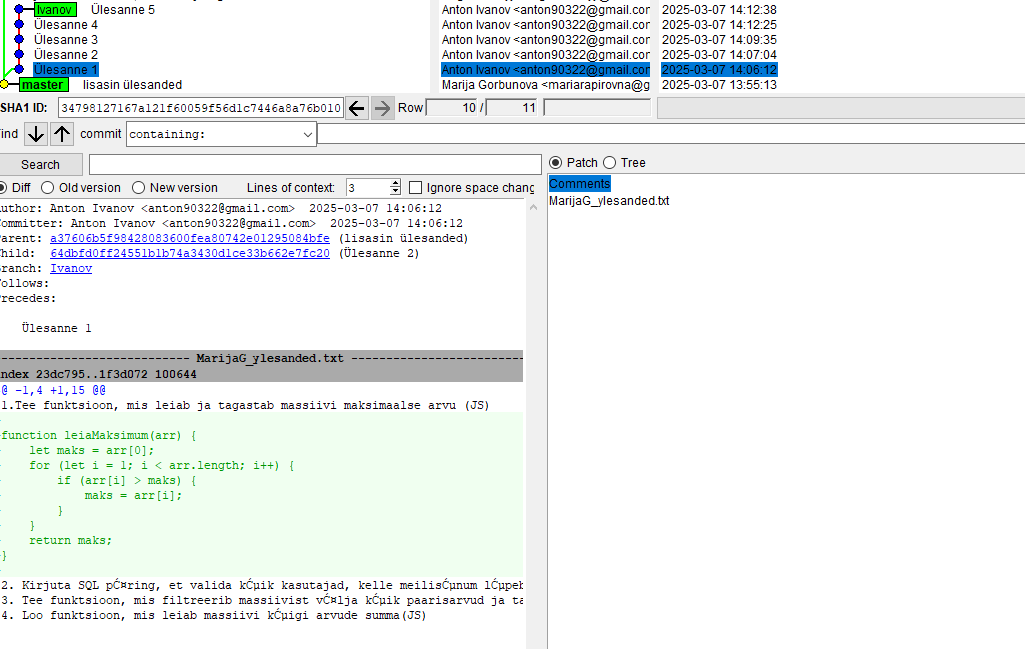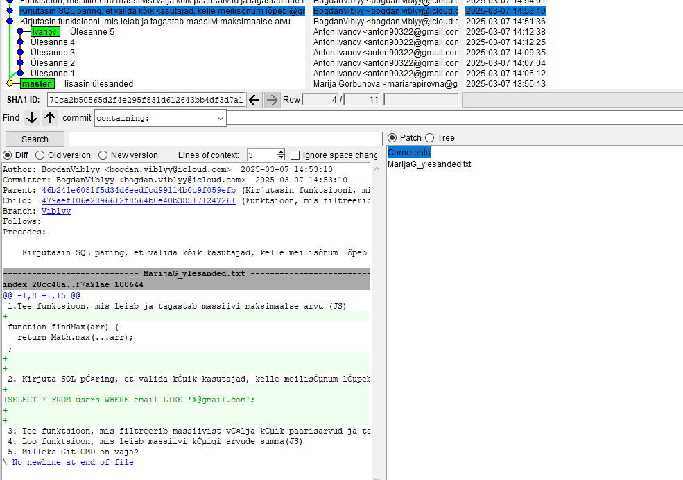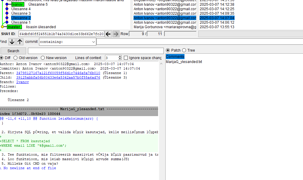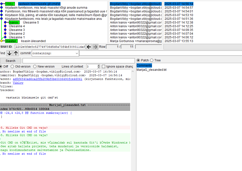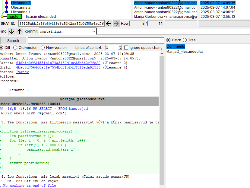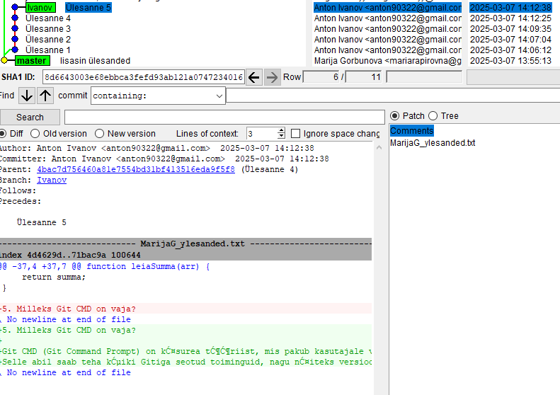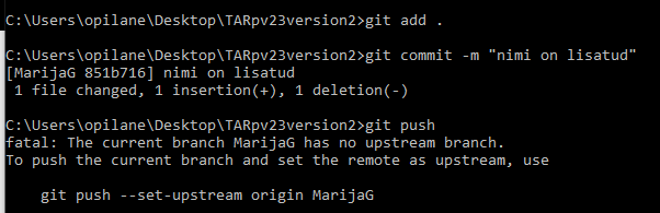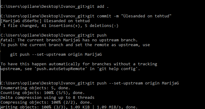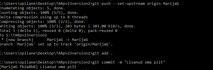 Mulle meeldis see töö ja praegu ma võin tõesti hästi teha commite ja töötada GIT CMD’ga 👍