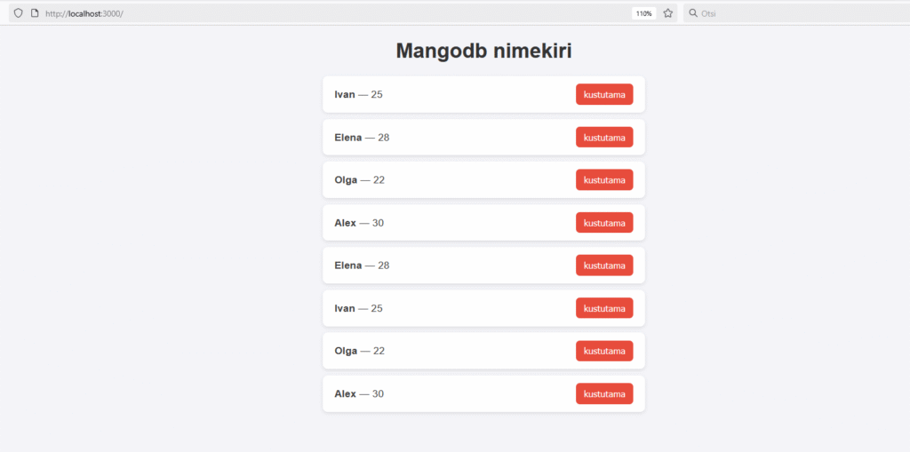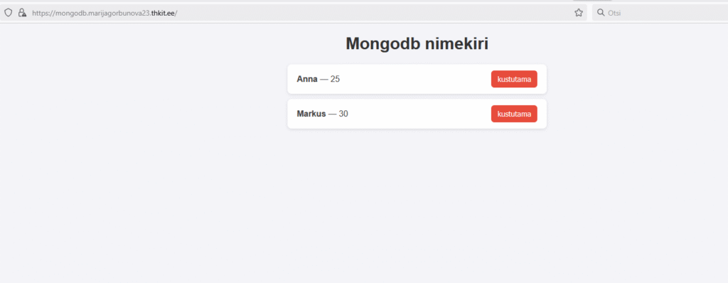 <h1>Mangodb nimekiri</h1>