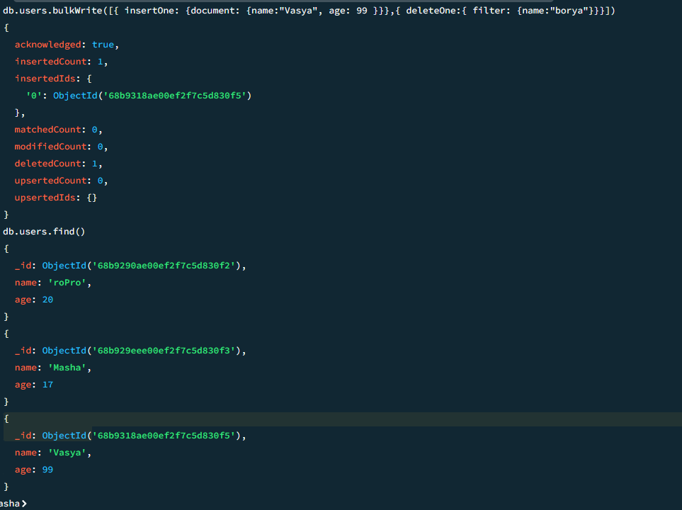 Teeme 2 tegevuse (BulkWrite)