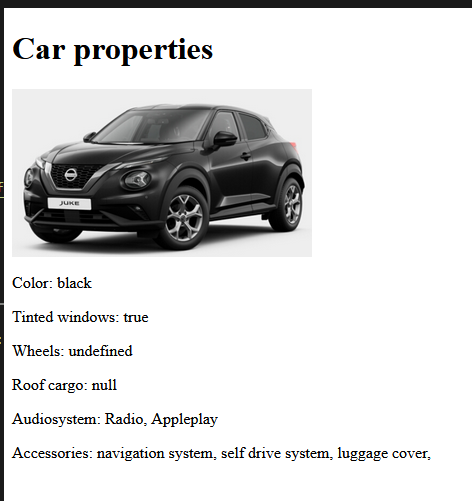 - myjson[0].Car on objekt, mis sisaldab auto omadusi.